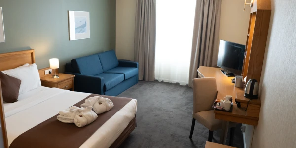 Future Inn Cardiff is a modern and comfortable hotel in the heart of Cardiff Bay, one of the city's most vibrant areas. The hotel is conveniently located near main access roads and public transportation, making it easy to explore the city. This well-appointed hotel offers a range of amenities, ensuring a pleasant and convenient stay. Alongside its excellent location, the hotel boasts spacious and airy bedrooms - all of which sleep up to four guests - that feature free Wi-Fi, flat-screen TVs, a desk and workspace, a laptop safe, a complimentary robe and slippers. Plus, home away from home services like the guest laundry room, ice buckets and wine glasses. There's also electric car charging and free parking, which are rare in such a central location.